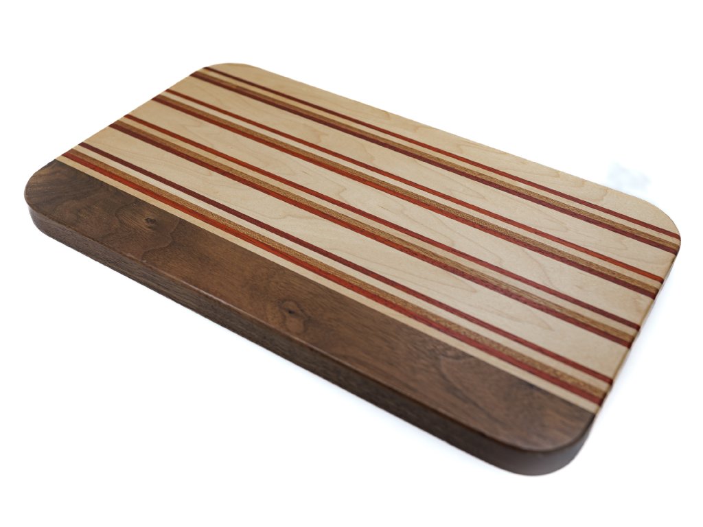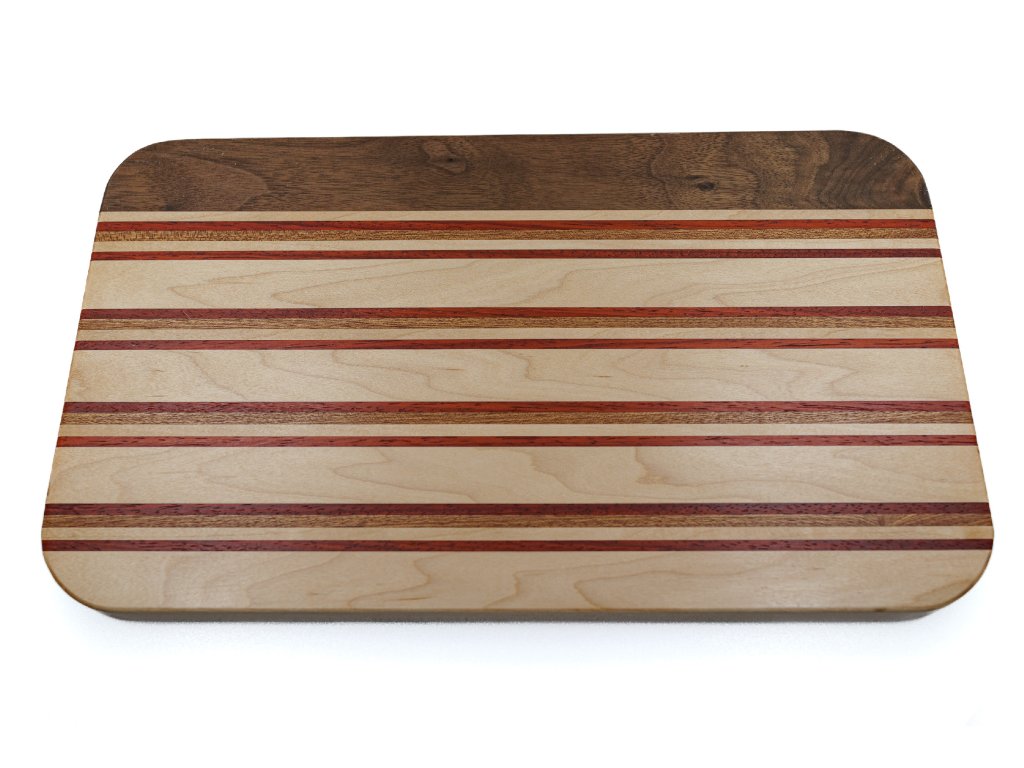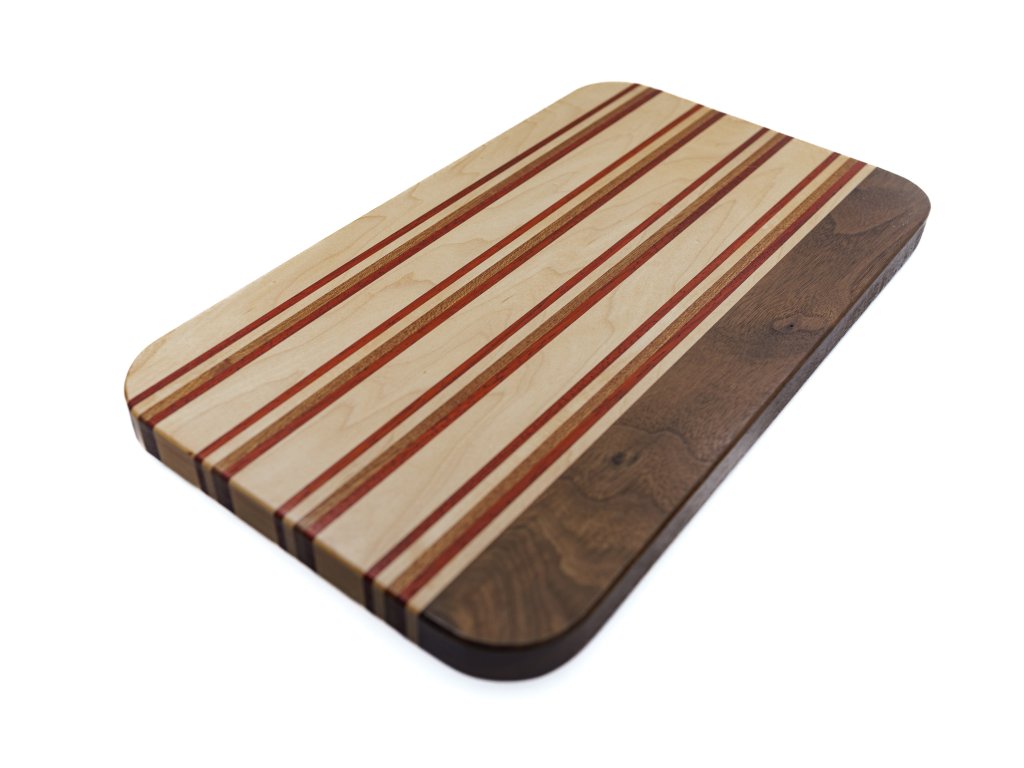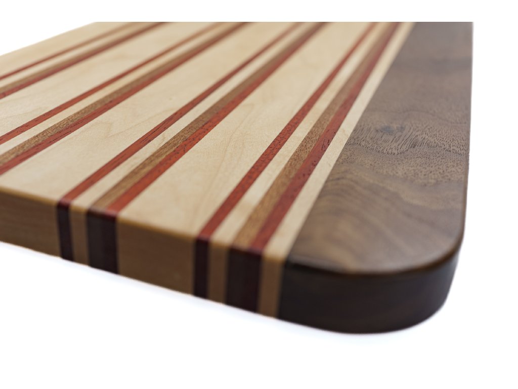 Unikátní servírovací nebo krájecí kuchyňské prkénko z kvalitních exotických dřevin. Ošetřeno OSMO olejem certifikovaným pro přímý styk s potravinami.