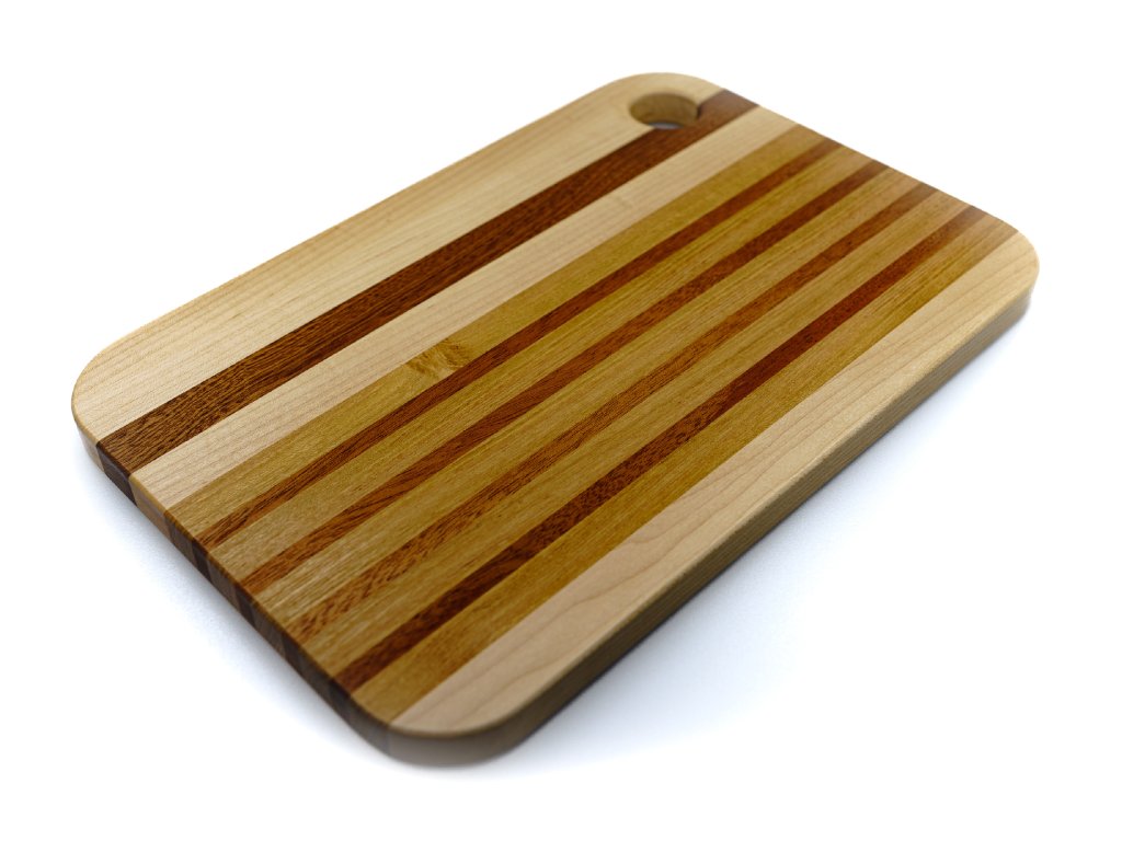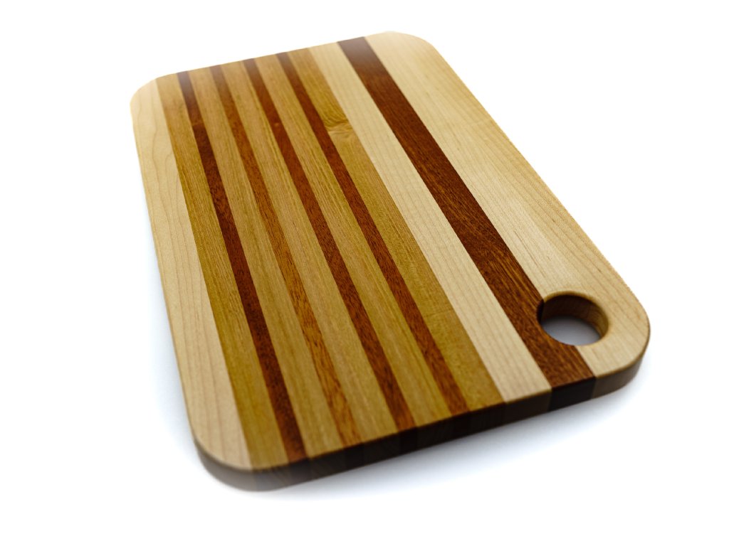 Unikátní servírovací nebo krájecí kuchyňské prkénko z kvalitních exotických dřevin. Ošetřeno OSMO olejem certifikovaným pro přímý styk s potravinami.